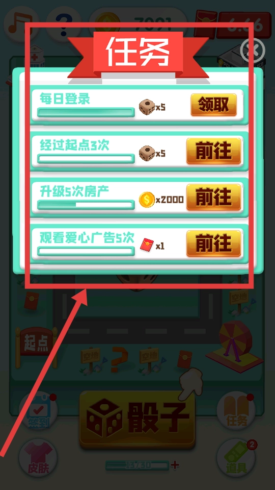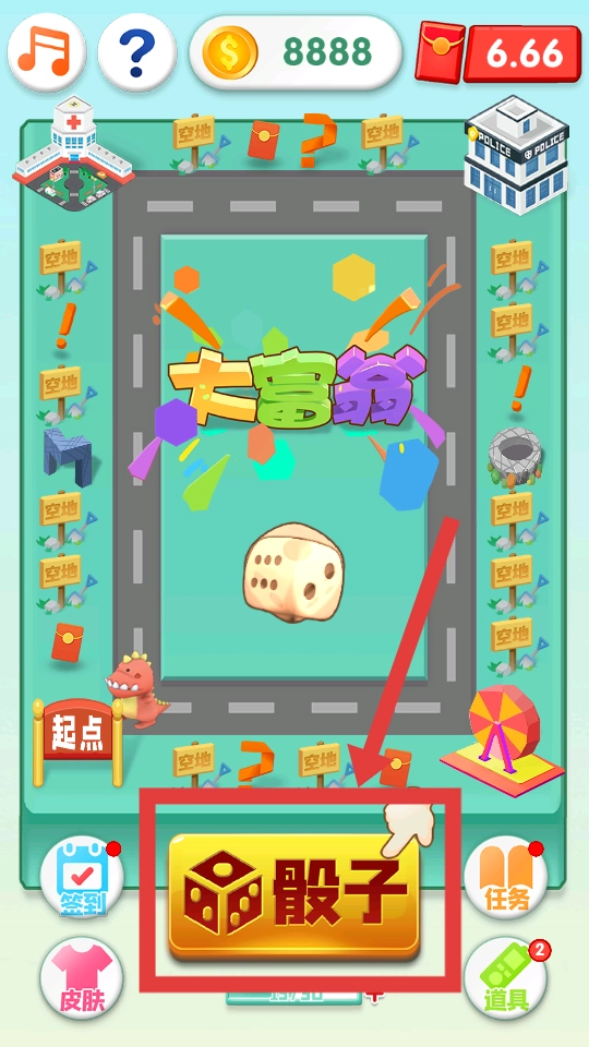 进入大富翁游戏的主界面后,点击那个金色的骰子按钮,投掷骰子后角色就会按照骰子的点数在棋盘上移动,从而开启你的回合。