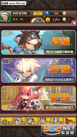 进入游戏后,咱们直接开启放置大作战玩法。在商城里,消耗金币和钻石就能招募鬼剑士、格斗家、魔法师等各类勇士。虽说能用金币招募,但每天只有一次低价购买的机会,之后再想抽取,价格就会变得非常高昂。