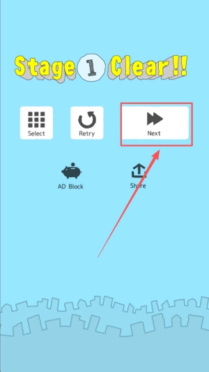 4、选择继续:在结算界面点击Next可进入下一关,点击Retry可重开本关,还能选择ADBlock关闭广告。