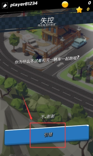 2、失控时点击蓝色引领按钮,与另一车一起跑。