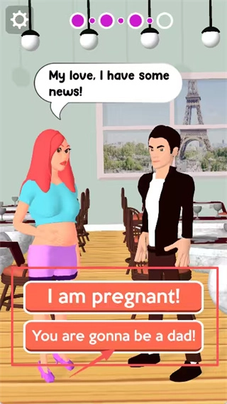 在餐厅里向伴侣透露怀孕消息时,选择不同的对话选项会对剧情走向产生影响。