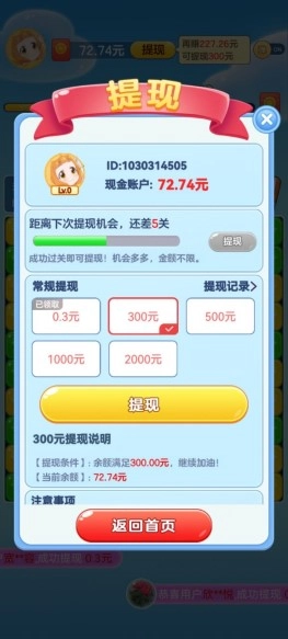 而当红包达到一定数额时,玩家们点击提现哦。