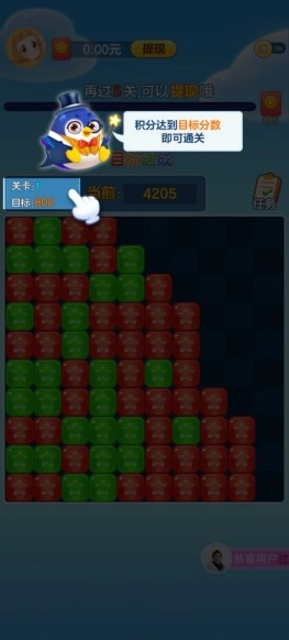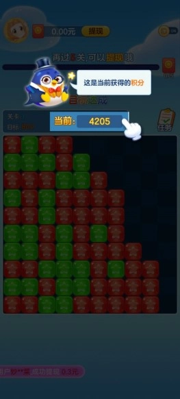 如图所示,当积分达到目标分数时,就能进入下一关。