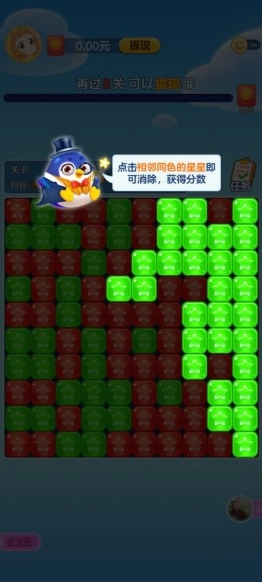 天天点点消正版是一款休闲有趣的点击消除游戏。它的玩法别具一格,玩家只需点击相邻的同色星星就能完成消除;过程中还能开动脑筋,先清理多余星星,再一次性消除所有同色星星,既能冲击高分,又能体验畅快的消除乐趣!为了鼓励玩家闯关,天天点点消最新版设置了丰富的红包奖励,完成关卡任务就能获得不同金额的红包,积累到一定数额还能提现,是不是很吸引人?此外,游戏清新明亮的画风、绚丽的消除特效与音效,以及无需联网也能畅玩的便捷性,这些优势都能为玩家带来独特的消除体验。欢迎感兴趣的玩家来本站免费试玩!