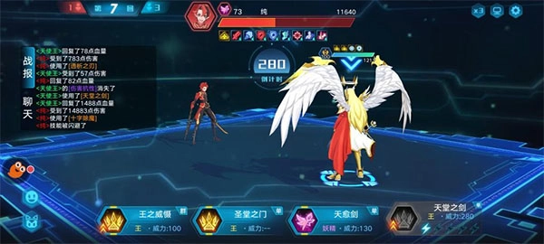 最后聊聊天使王突破的打法,这个突破难度可不低。可以先上寒冰公主或者其他能降属性的亚比来削弱对方,接着让天使王连续用两次一技能“王之威慑”,之后再放大招。需要注意的是,当天使王上场后的第四或第五回合,一定要用二技能来维持血量,因为这时你会发现纯的输出在持续提升。正常情况下,天使王把魔攻数值叠满后,大招伤害大概能到七八千;要是触发暴击再加上无视魔防的效果,大招伤害甚至能破万,威力相当可观。(要是没有天使王,那就得用黄金圣天伊慢慢尝试了——用它的话得打持久战,中途纯会时不时大量回血,导致回合拖得越久,纯的血量不仅没减少反而还会增加,这就得看运气了)