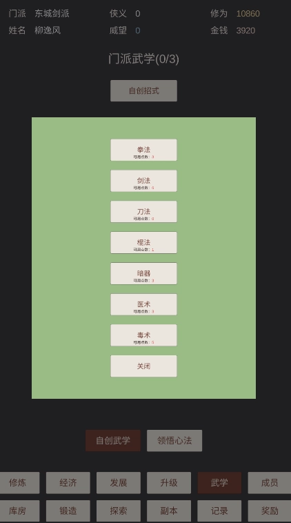 在武学领域可自行创编招式,无论是拳法还是棍法等都能自主创造,不过这需要消耗属性点。