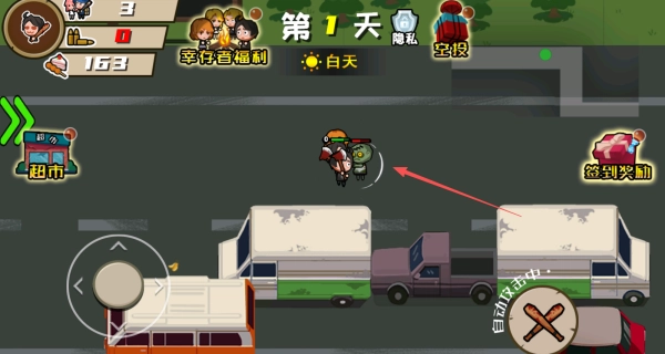 4、在场景中遇到丧尸时,可利用自动攻击功能,无需手动操作即可让角色主动发起攻击,同时留意周围物资,边战斗边规划后续移动路线。