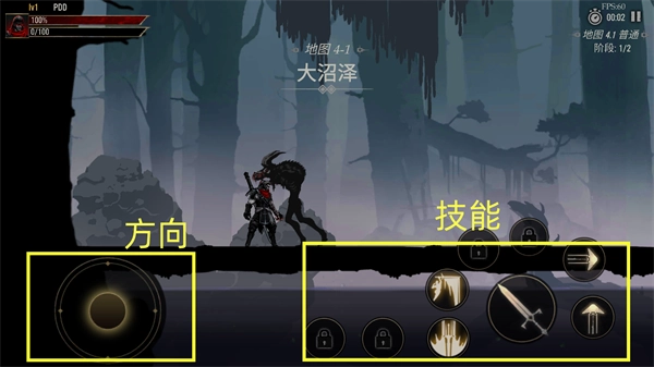 游戏的操作方式十分简便,左边的按键用来控制角色的移动方向,右边的按键则能触发各类技能。