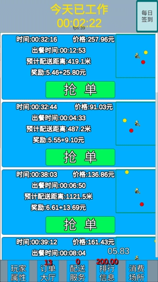 在送外卖玩法里,玩家得迅速抢单,要是没能第一时间做出反应,订单就会被其他玩家抢走。