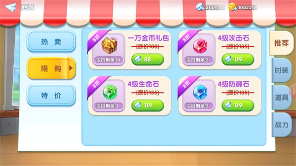 说明:金币礼包价格:88钻石/个。88钻石=1W金币