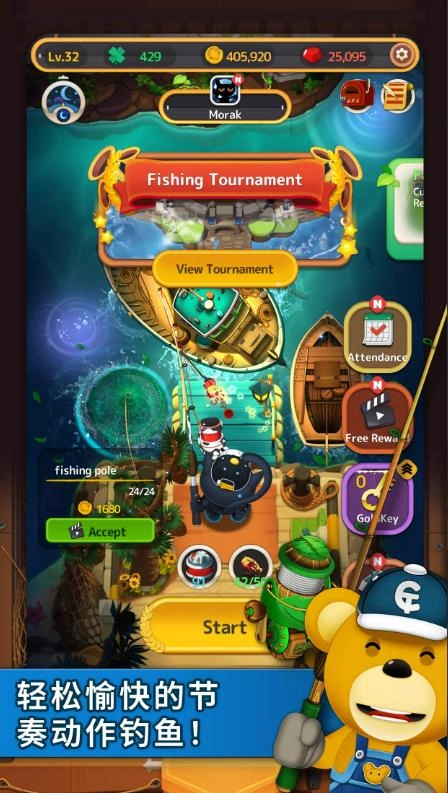 全球玩家可以在同一个舞台上展开竞技较量,每周都会实时更新钓鱼锦标赛的相关内容。2、拥有多种多样变化的装扮系统,助力玩家打造专属于自己的钓鱼明星形象。3、游戏中不存在抽卡机制,资源的获取完全依靠完成游戏内的任务以及玩家自身的操作。
