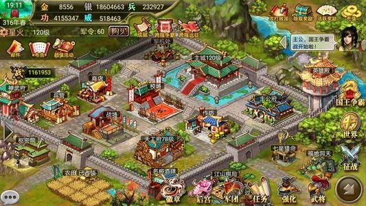 战斗玩法多样且精彩: 这里有万人参与的国战,还有军团攻城战、银矿争夺之战、王位角逐之战、群英会抢夺战以及跨服对战等丰富玩法。数千位武将率领着上百万的兵马激烈交锋,带您沉浸式体验震撼人心的沙场氛围,助您在战斗中斩获属于自己的荣耀。