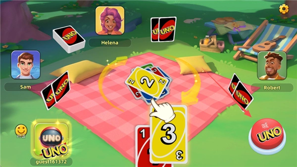 2、当玩家手中仅剩最后一张牌时,必须大声喊出“UNO”;若未及时喊出且被其他玩家发现,则需额外抽牌,以此增强游戏的紧张刺激感。