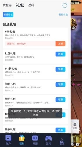 进入游戏后,点击游戏内的悬浮窗,选择礼包选项,领取对应的礼包码。