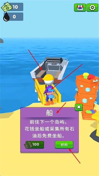 在码头处点击船只,既可花费100货币直接前往下一座岛屿,也能等采完石油后免费通行。你可以根据实际需求选择付费立即出发,或是暂缓行程,并规划好后续的探索顺序。