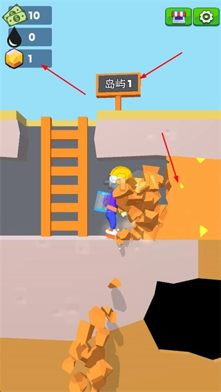 当缺乏资源时,可点击进入岛屿,顺着通道进行挖掘,注意地面上的晶石,通过破碎障碍来收集它们,积累足够资源后就能解锁后续的岛屿和功能。