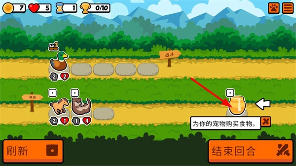 4、接着也能购买食物来帮助你的宠物去战斗。