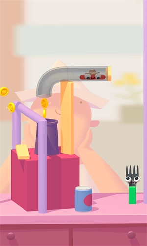 在战斗环节里,玩家得精准避开叉子;场景中除了叉子机关,还散落着不少道具,只要拾取这些道具,就能获得相应的辅助效果。