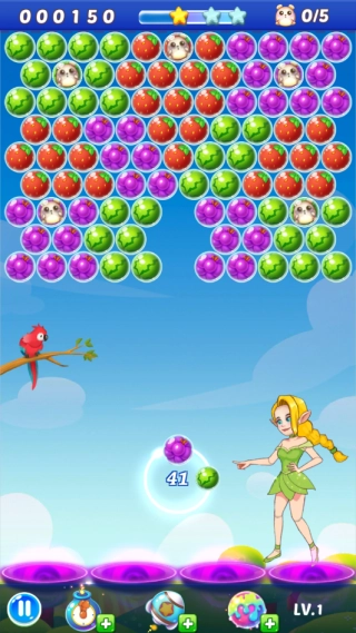 3、留存条纹、彩虹等特殊泡泡道具,关卡或泡泡即将触线的紧急时刻使用,快速突破困境。