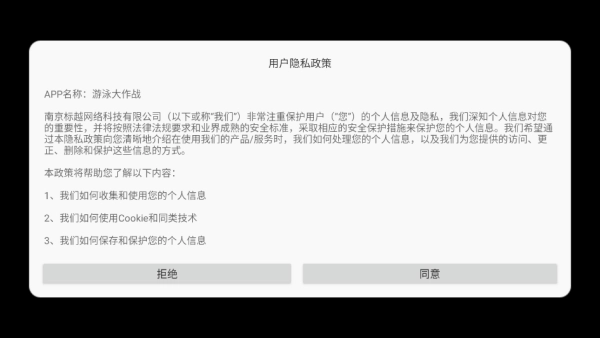 1、进入游戏后阅读并同意隐私政策,点击右下角按钮进入下一环节,开启游泳竞技之旅。
