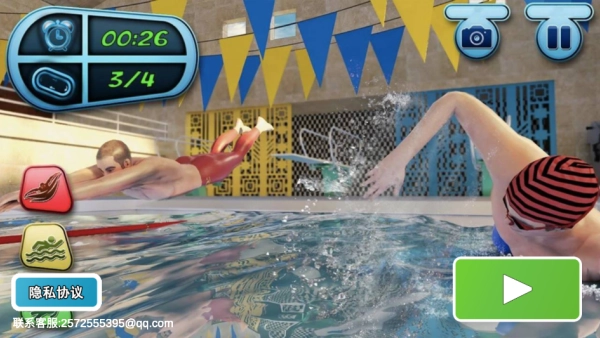 2、比赛时根据泳姿要求把控划水节奏与转身时机,触发QTE特殊时刻可获得爆发加速,助力冲刺。
