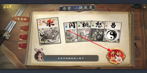 进入关卡界面后,先查看已发放的手牌组合,接着点击开始挑战按钮,就能进入战斗对局开启对战。