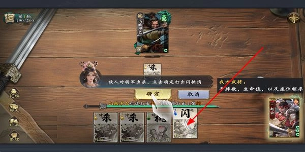 3、在战斗过程中,当敌方使用攻击牌时,你可以从手牌里挑选闪牌来抵消这次攻击,之后点击确定按钮,这样就完成了防御操作。