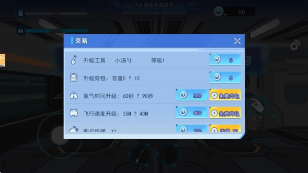 3. 商店界面里,玩家能够对道具、背包、氧气等进行升级,以此增强自身的挖矿能力。