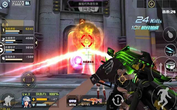 摧毁“灼热原生体”后,基地会空投一枚核融电池,它会顺着电磁轨道慢慢移动,这时怪物会从通道里冲出来攻击电池。想要刷分的玩家要尽量把“金蜘蛛”都打掉,等“金蜘蛛”刷新出来时,别立刻消灭它,让它走到电池附近,这样就能有足够的时间击杀。这时候需要一个队友帮忙助攻,建议助攻时给刷分的队员打半基数的子弹支援。其他队友则负责保护核融电池不被破坏。