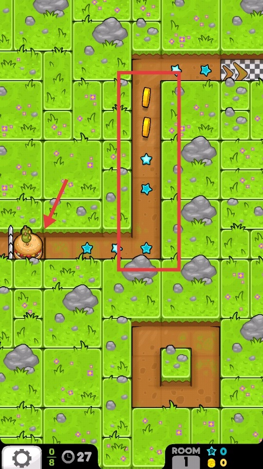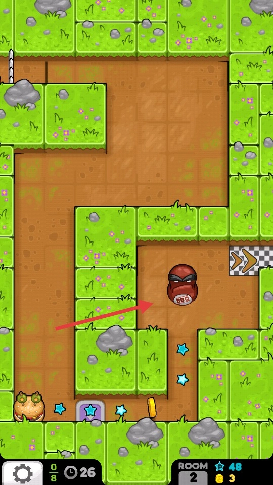 2、在关卡里,你要操控汉堡角色顺着路径移动,收集金币与蓝色星星,以此获取资源。