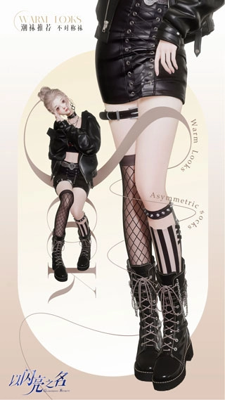 一双与机车风100%相宜的不对称高筒袜
