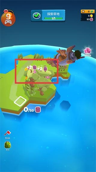 1、在【探索草地】任务中,收集场景内的【+2】道具,积累资源的同时推进任务进度。