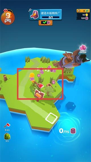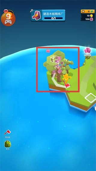 4、完成【建造木板精炼厂】任务后,领取奖励并继续收集资源,推进后续的建筑解锁。