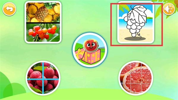 1、在选图界面点目标水果图案,像【葡萄】样式的选项,就能进入对应的绘画关卡开始创作啦。
