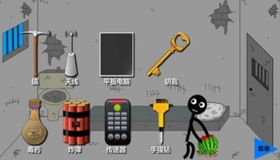 火柴人西瓜越狱安卓版是一款以火柴人越狱为主题的冒险游戏。在游戏场景中会出现各式各样的道具,你需要通过思考选择合适的工具,才能帮助火柴人成功逃脱。快开动脑筋,仔细观察周围环境,用尽一切办法协助火柴人完成越狱吧。