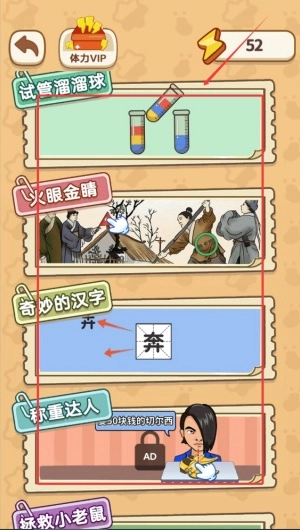 系统性思维训练体系:八大智力维度下各设50道精心打磨的阶梯式题目,借助科学的难度进阶曲线,循序渐进地提升玩家的综合思维能力。