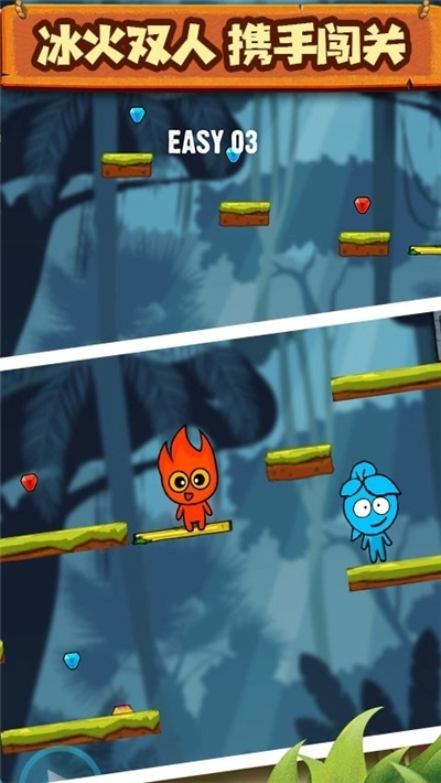 在这款既可爱又充满活力的游戏里,你得分别操控两个角色:一个是模样软萌、周身萦绕着蓝色光晕的冰雪公主,另一个是英气逼人、身上燃着不灭烈焰的火焰王子。你的任务很简单——让他们各自收集对应颜色的宝石,最后一同站到大门前,就能开启下一关的挑战啦。