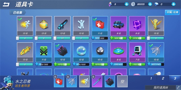 泷(水之忍者):能量剑、医疗箱、飞爪(已锁定),酒桶、疾跑