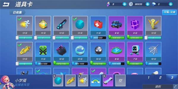 小学妹:皮卡、飞爪、医疗箱、魔法墙、疾跑(还是锁定前三个)