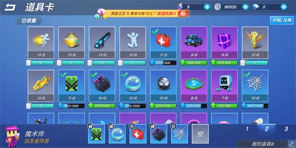 新手入门时可以考虑这样搭配道具卡:医疗箱(能群体回血,建议优先锁定)、跳高(用来逃离禁闭室,最好放在靠前的位置,不然容易被困住)、疾跑(提升移速且不受攻击打断,关键是消耗少)、火箭筒(针对追捕者使用,偶尔发射几发还能击退对方)、手雷(能给敌人施加迟钝效果,造成减速和无法攻击)、皮卡(移动速度极快,适合逃生时使用,还能顺路载人)。不过这只是新手建议的卡组,并非强制要求,大家可以根据自己的习惯灵活调整。