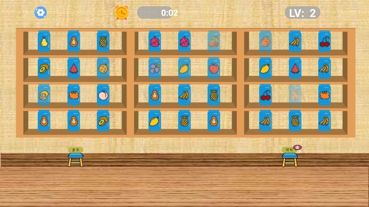 游戏内设有丰富多样的道具与技能系统:玩家既能通过完成各类任务获取,也能直接购买,从而得到爆炸水果、换位水果等不同功能的助力工具,借助这些工具可以更顺利地突破游戏中的各种难关。