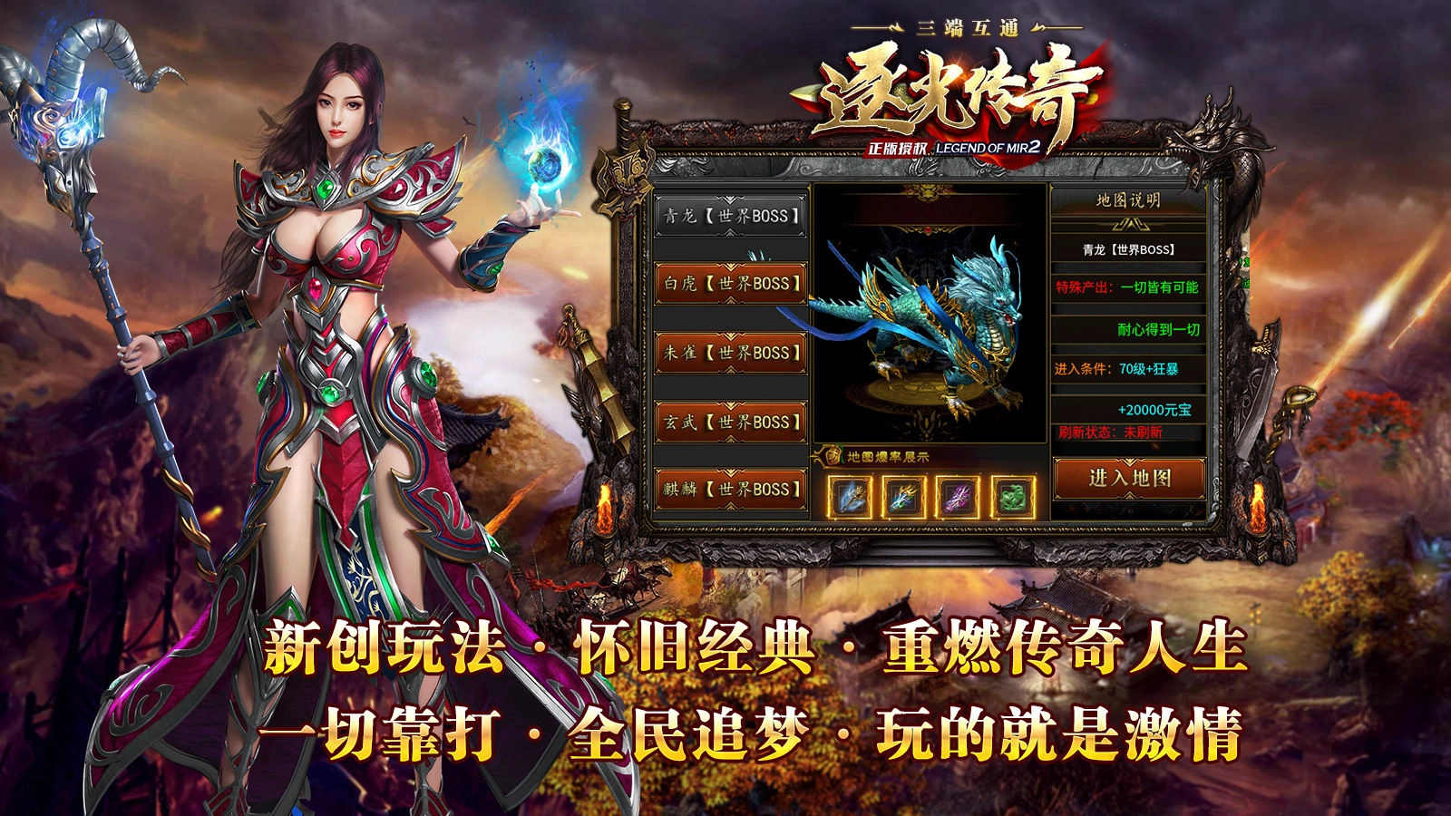 《逐光传奇》是一款拥有精美画面、刺激战斗体验与自由交易系统的传奇游戏。游戏亮点在于其多元化的职业选择、丰富多样的副本与任务设计,以及深度的社交互动功能。而高品质的游戏体验、公平公正的游戏环境,加上持续的内容更新与优化,则是这款游戏的核心优势。现在就加入,开启这段充满冒险与热血战斗的传奇之旅吧!
