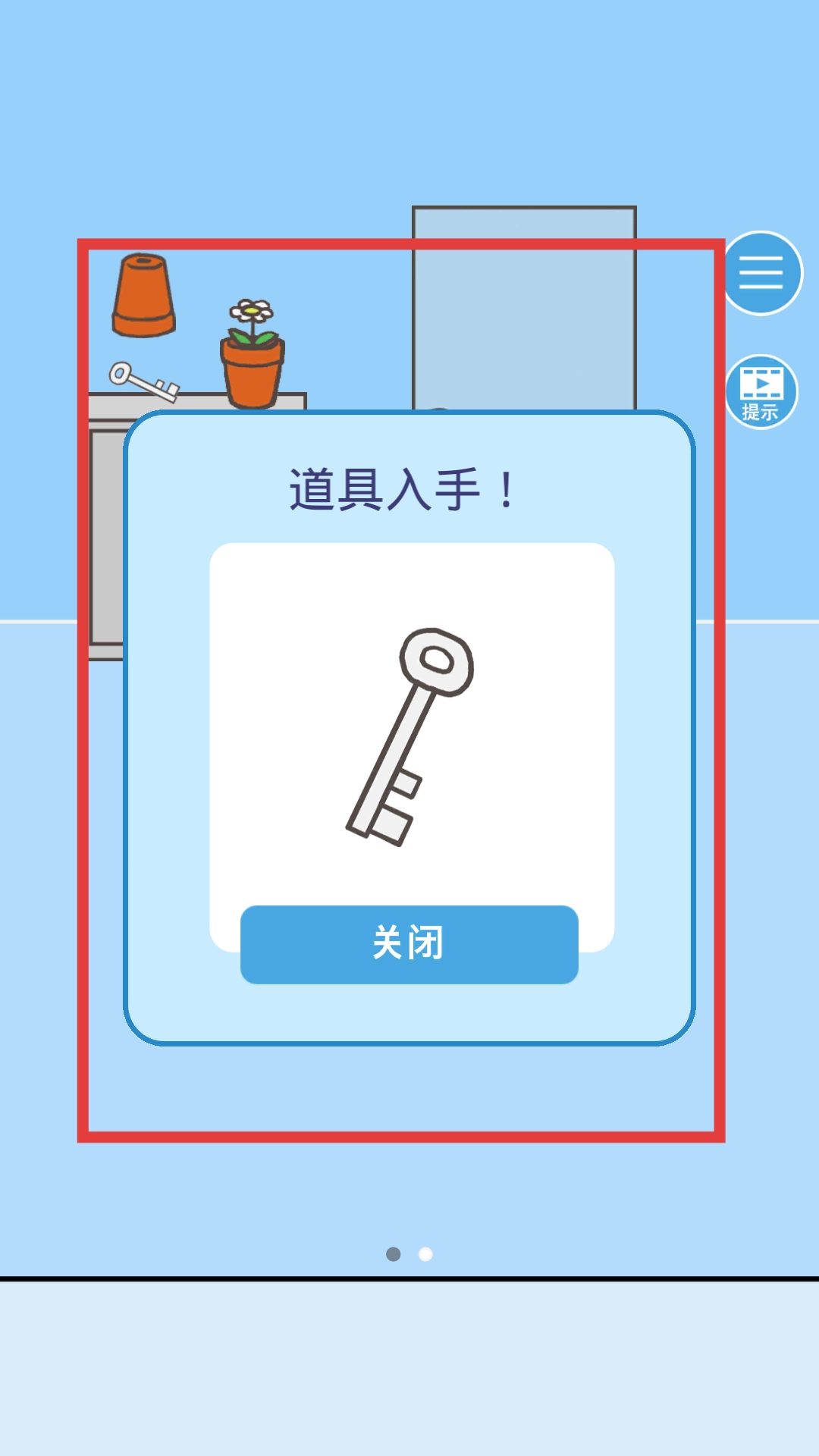 在游戏场景里点击场景内的物品,会触发道具获取弹窗,显示所得到的道具;点击关闭该弹窗后,道具就会存入背包。
