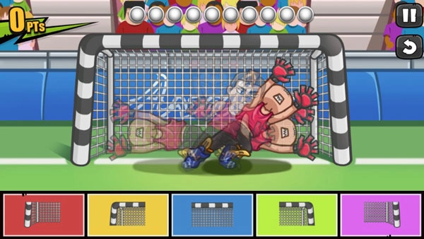 在点球大战环节,游戏设置了五个功能按键,每个按键对应不同的颜色,这些颜色分别代表球门的不同区域。尽管游戏初始阶段系统会提示各按钮对应的射门区域,而且按钮上也有明确标识,但不少玩家反馈,守门员的动作实在太快,根本没时间看清按钮。这里给大家一个小建议:不用把五个按键都记下来,你可以只记住右侧两个或者左侧两个按钮,等守门员向另一边移动防守时再射门,这样能有效缩短你的反应时间,减轻操作时的反应压力。