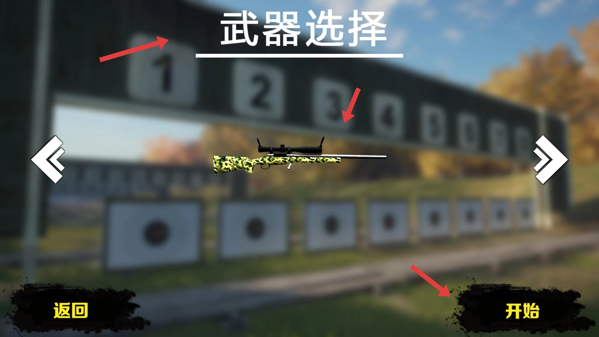 进入武器选择界面后,你可以在琳琅满目的武器中进行挑选,选定心仪的武器后点击开始按钮,即可携带所选武器开启狩猎之旅。