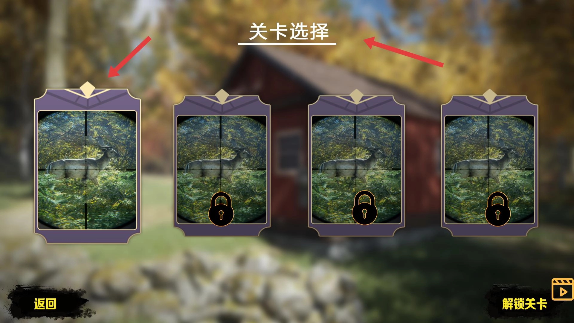 进入关卡选择界面后,能够挑选已经解锁的关卡,一旦进入关卡,就可以着手狩猎目标动物了。