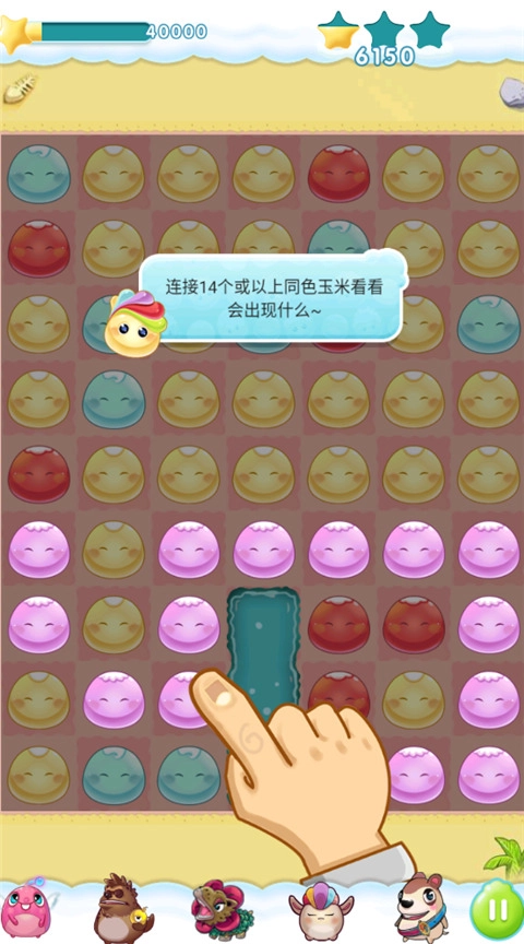 你好玉米那明快轻盈的色彩搭配、圆润可爱的角色形象,这种治愈系的画风实在让人难以抗拒,想必不少玩家正是被这一点吸引而来。至于玩法,《你好玉米》的特别之处在于,它允许玩家一次性连接周围所有相同颜色的玉米,核心就在于尽可能在一步操作中连接最多数量的同色玉米。