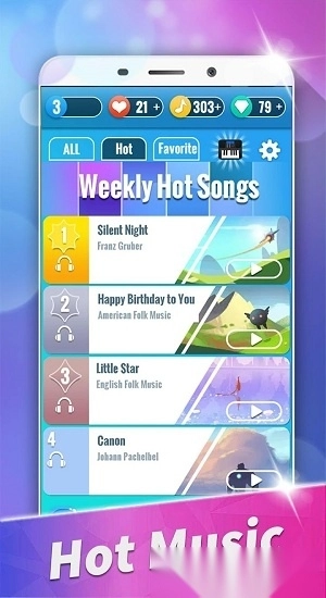 你可以在上面自由挑选自己喜爱的音乐,接着在弹奏的过程中,沉浸式地体验游戏哦;