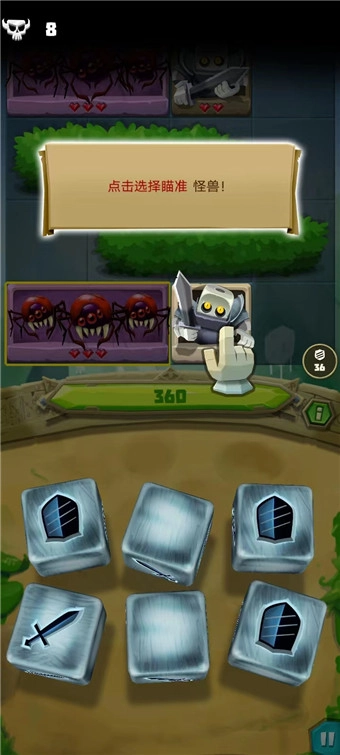 6、首先,玩家要先选定目标怪兽进行瞄准;之后,依旧通过转动骰子的方式来发起攻击;