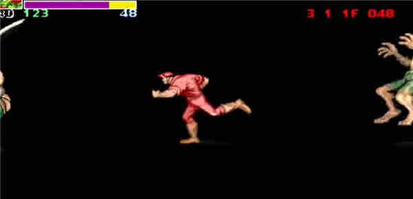7、刚跳下城堡,对着正在下跳没有落地的胖子一个倒勾腿,可以让他再次飞天,定在墙上数秒,爽。有一个特殊的点,打死他后出来的大餐可以勉强带到关尾场景中作补血用。
